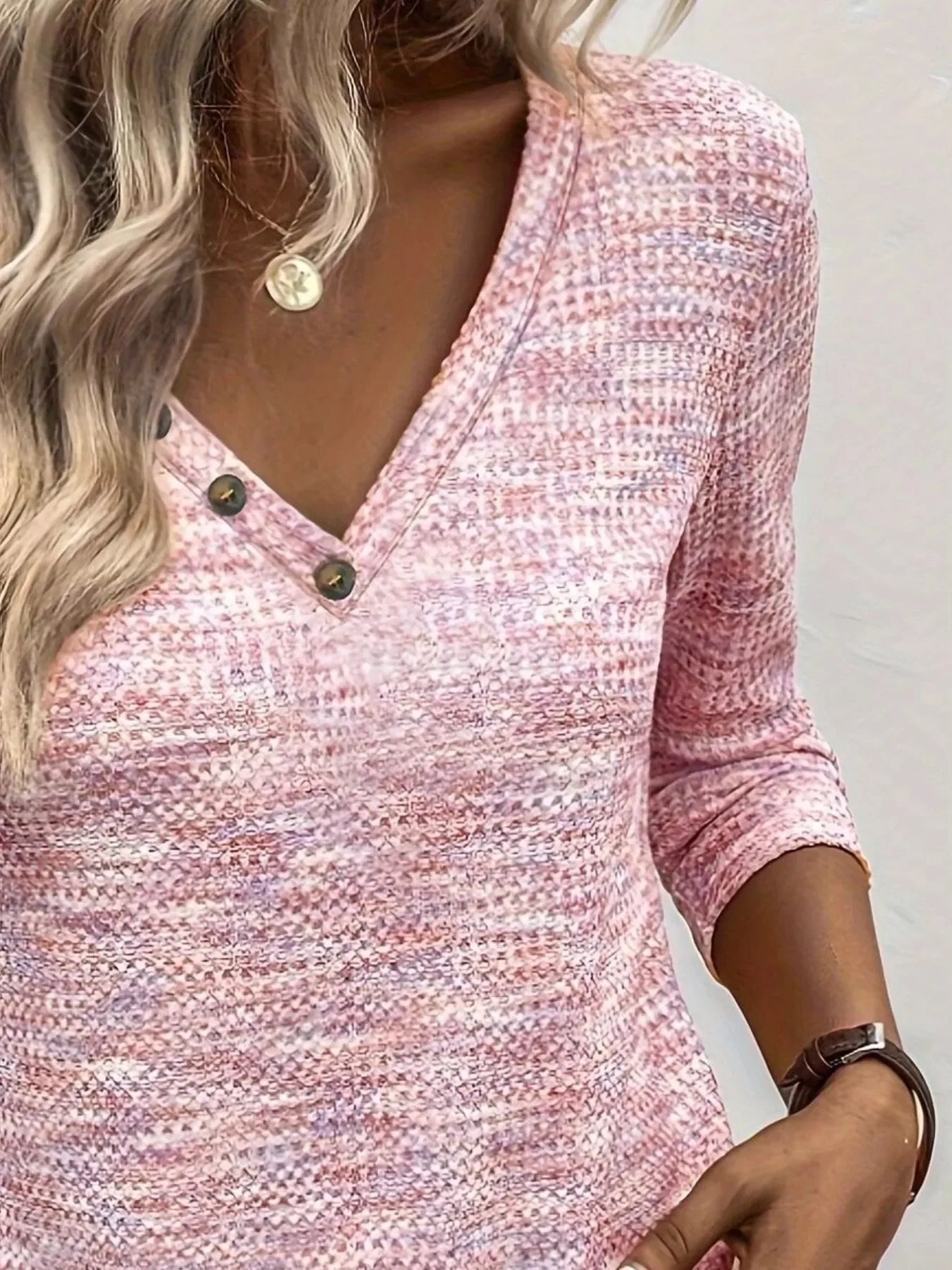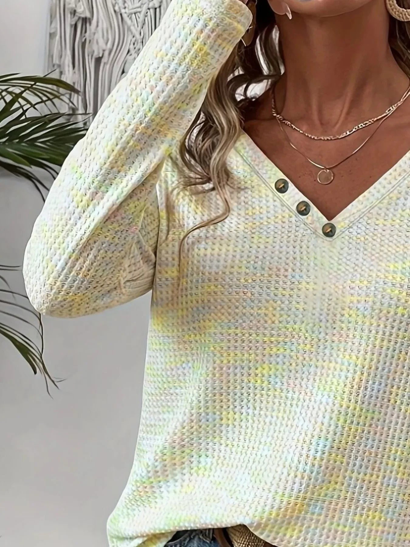Decor Button V-Neck Long Sleeve Top