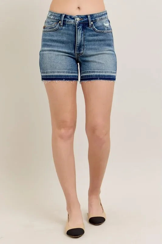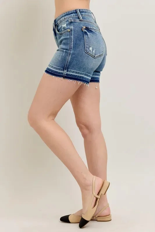 Judy Blue Full Size Mr Tummy Control Vintage Wash Release Hem Shorts Plus Size