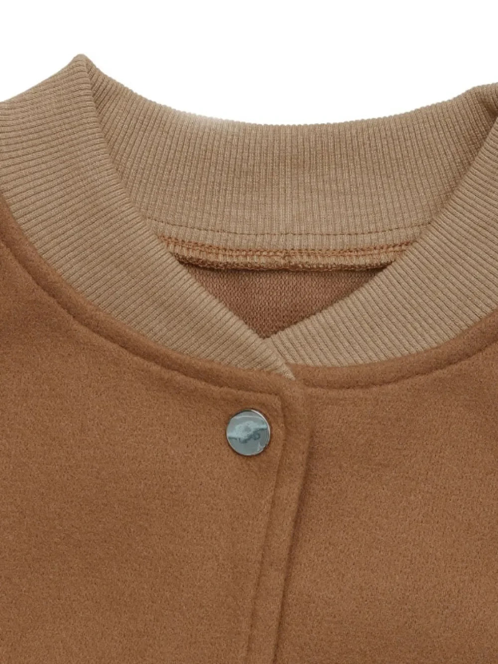 Perfee Baseball Collar Snap Down Long Sleeve Jacket